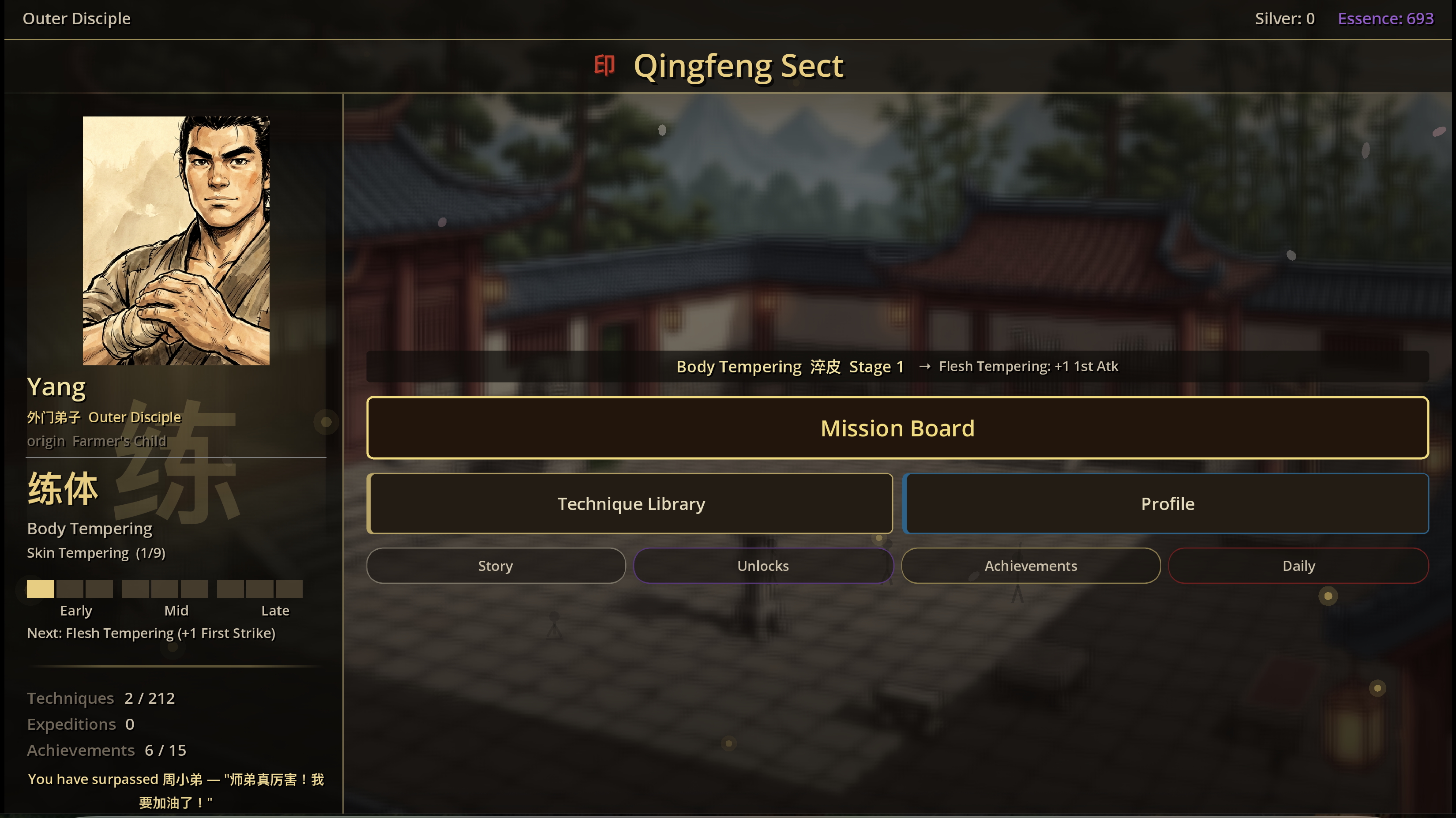 - Body tempering system, qi deviation mechanic, breakthrough gambits