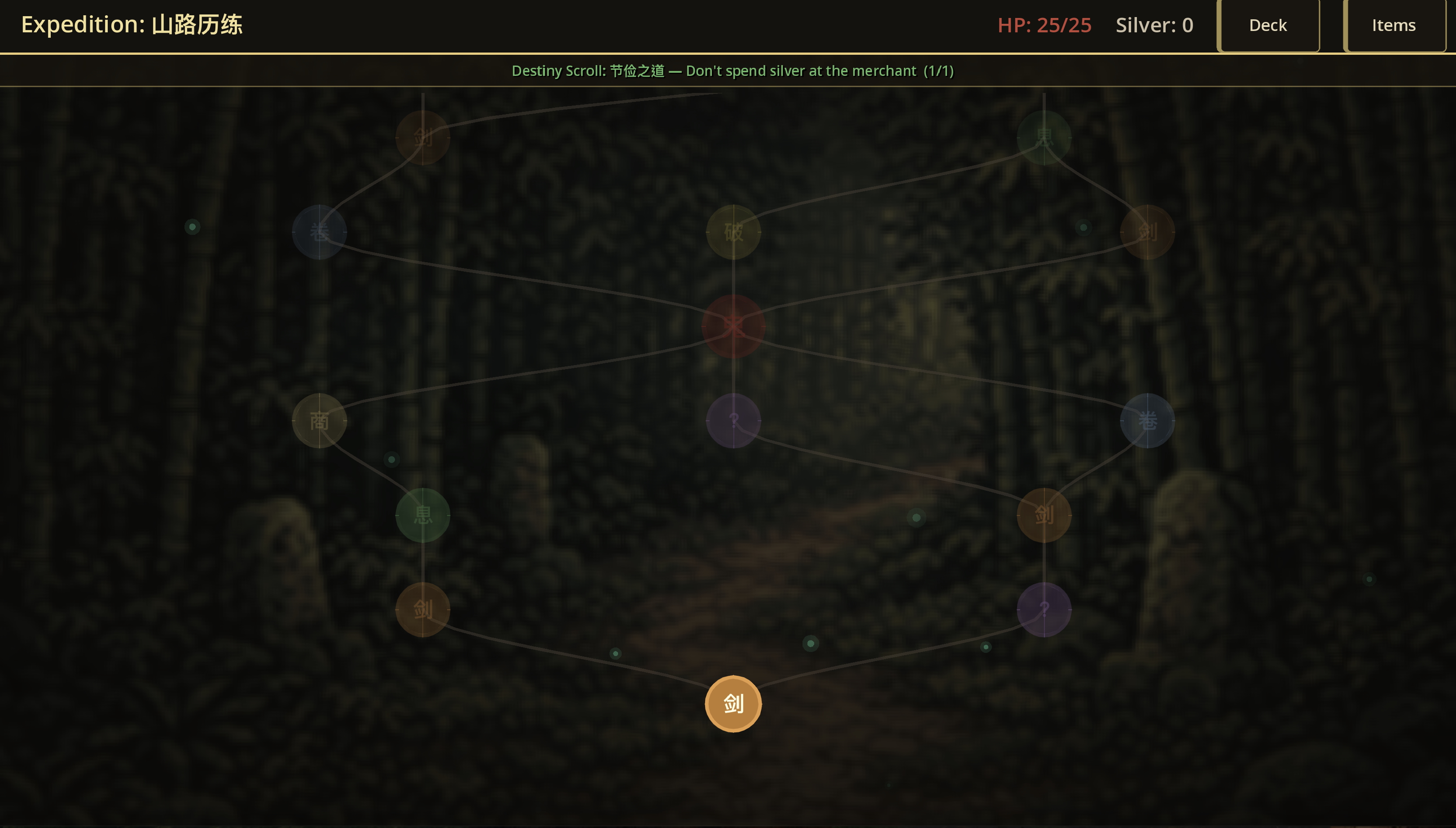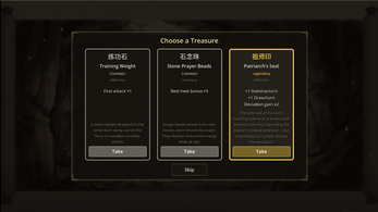 Train at your sect, embark on expeditions through branching maps, and battle enemies with a card-based combat system inspired by Slay the Spire, set in the world of Chinese martial arts fiction.